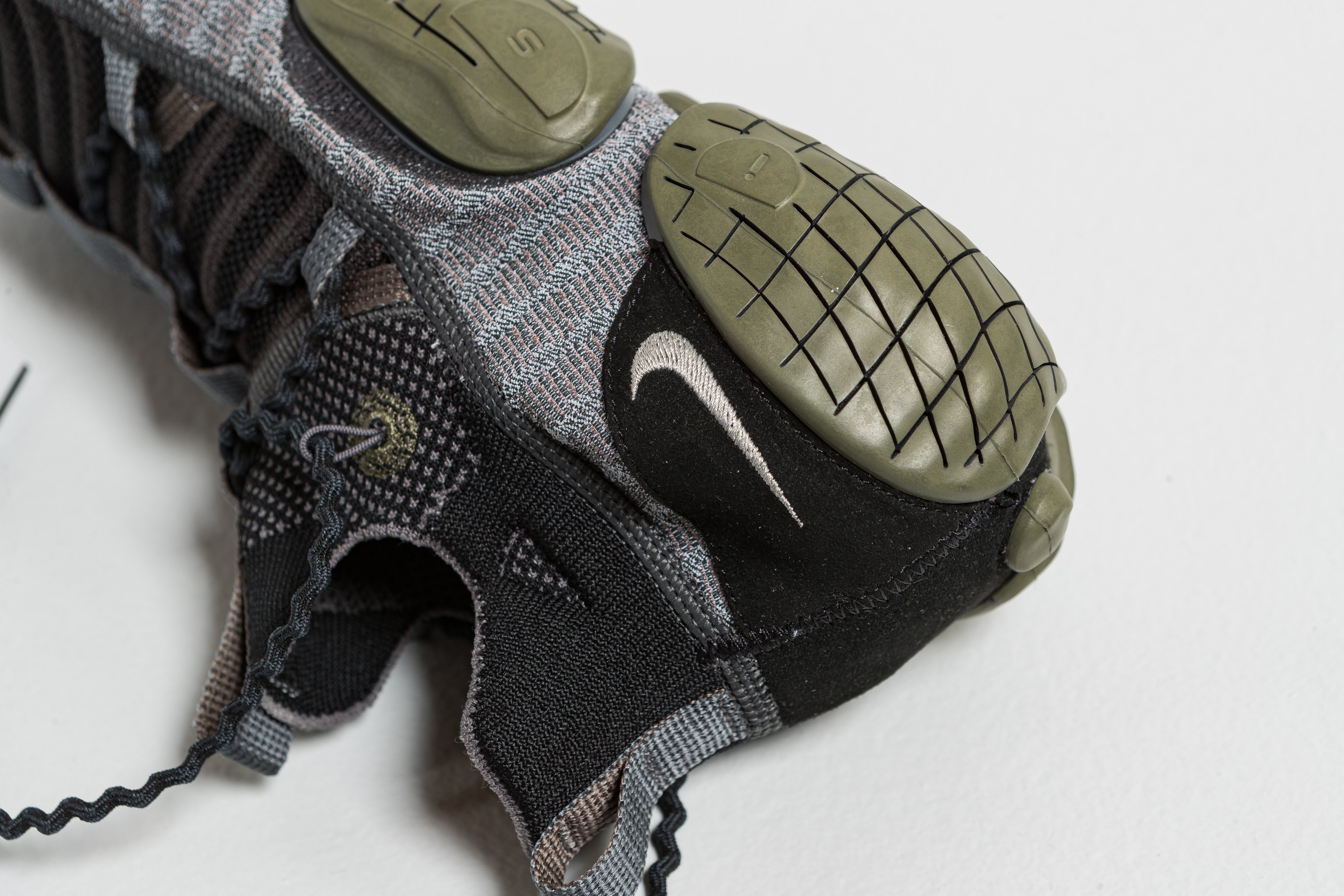 This season, Nike’s ISPA team considered the circular design principle of ‘disassembly’, or the ability to easily take a product apart to recycle its contents, one of the more challenging principles to implement in footwear design. A good shoe is flexible and durable. Traditionally, designers use glue and other bonding elements to achieve these aims, but that makes a shoe nearly impossible to disassemble and recycle. Recycling shoes usually requires shredding, an energy-intensive process that limits how the recycled materials can be used. Creating a shoe that can be taken apart would reduce the carbon footprint of the product and open up new possibilities for its life cycle.