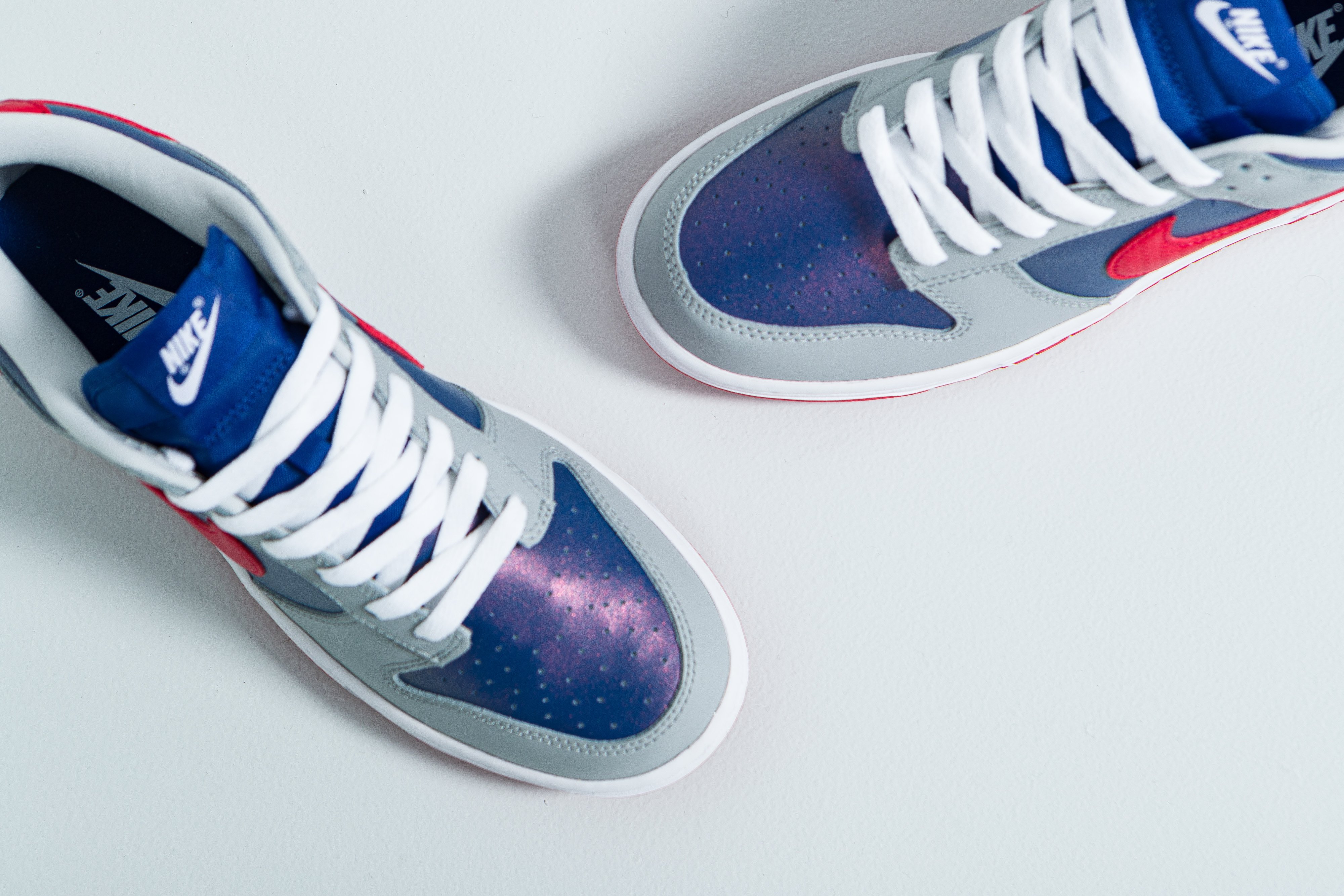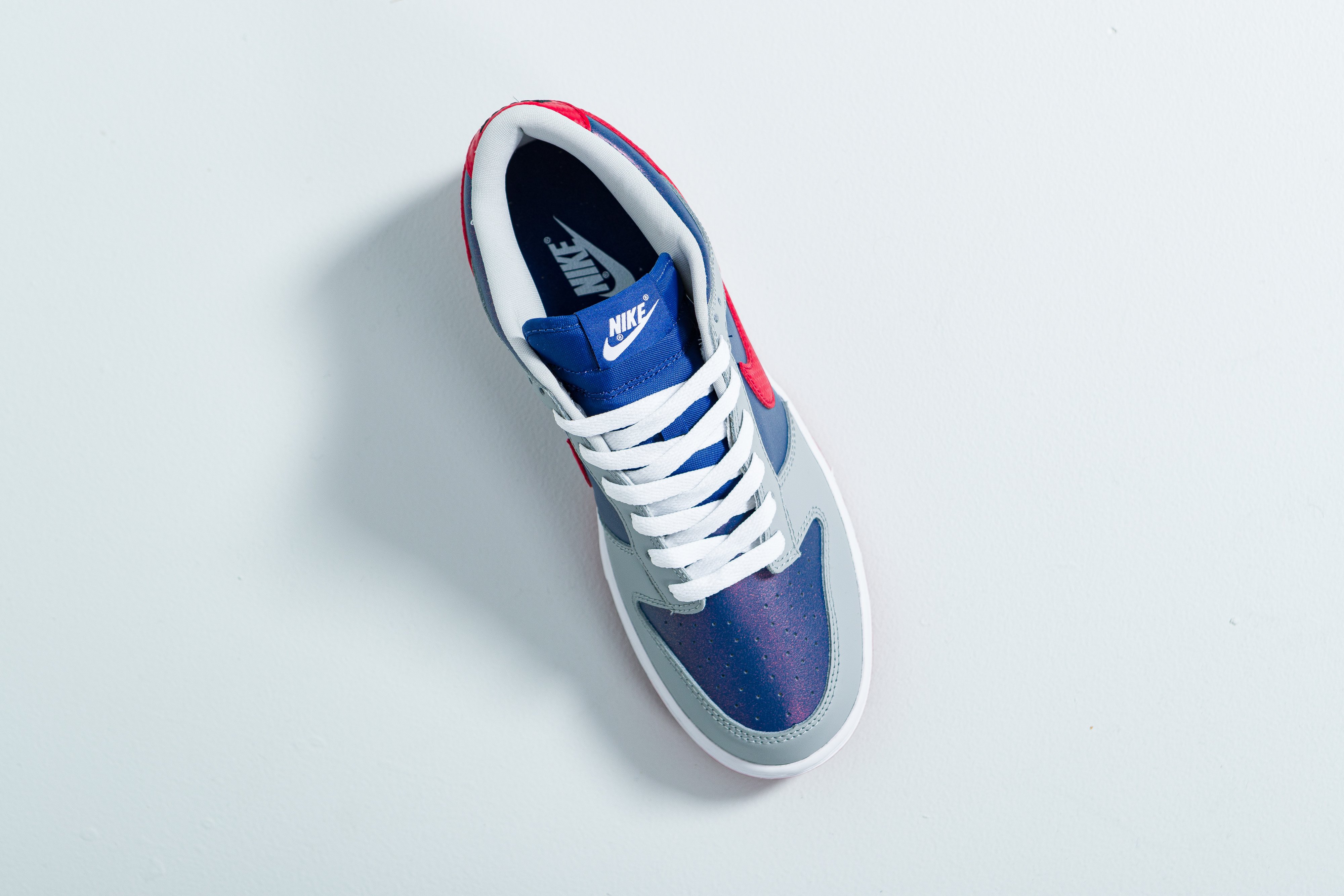 Originally released as a Japan CO.JP exclusive in 2001, this memorable Dunk colourway is making a return to shelves, and finally outside of Japan. The updated edition revives the OG by recreating the same colour blocking, with shades of Hyper Blue on the pearlised leather toe box and midpanels complemented by accents of silver. Not forgetting the bold silhouettes namesake of Samba Red on the sole, swoosh and heel finish it all off.