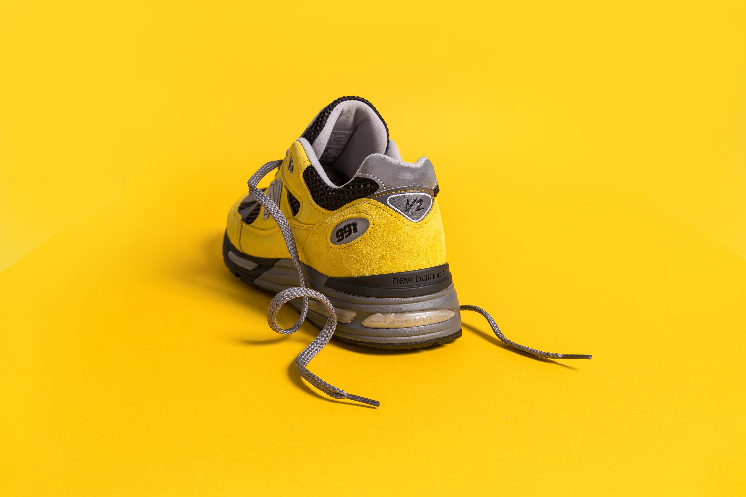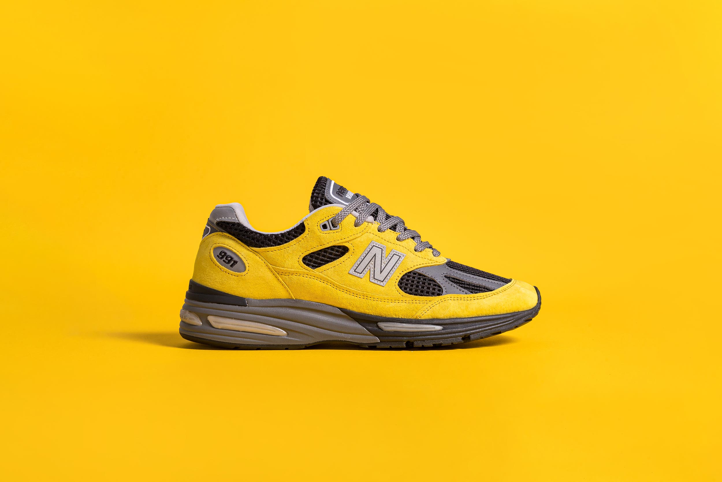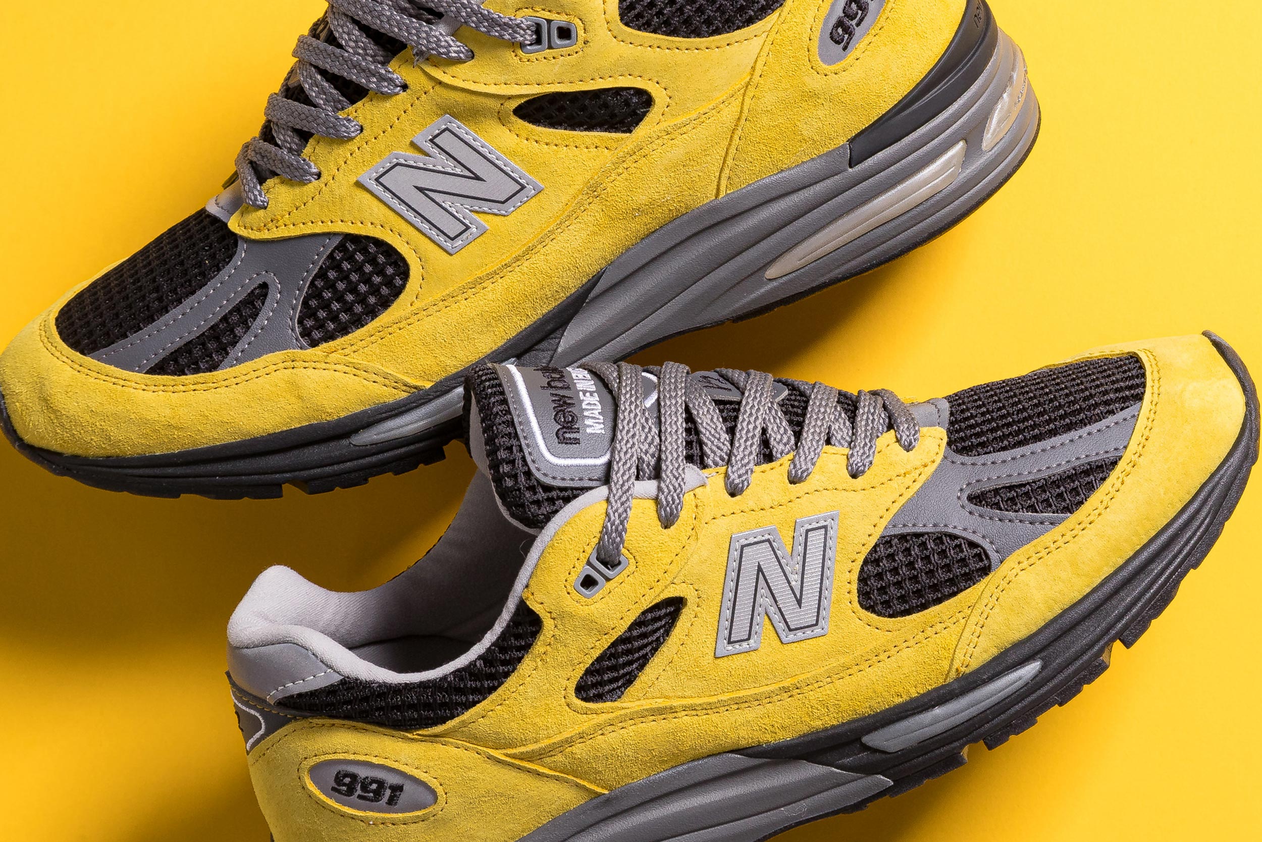 This version, exclusive to the Asia-Pacific (APAC) market—which UP THERE has been selected to represent—is finished with canary yellow pigskin suede. This gives them a bold and sporty look which we haven't seen on a 991v2 until this moment. The rest of the design is matched to other shoes in the pack, with lattice mesh and dark midsoles creating uniformity amongst all elements except the hero colour.