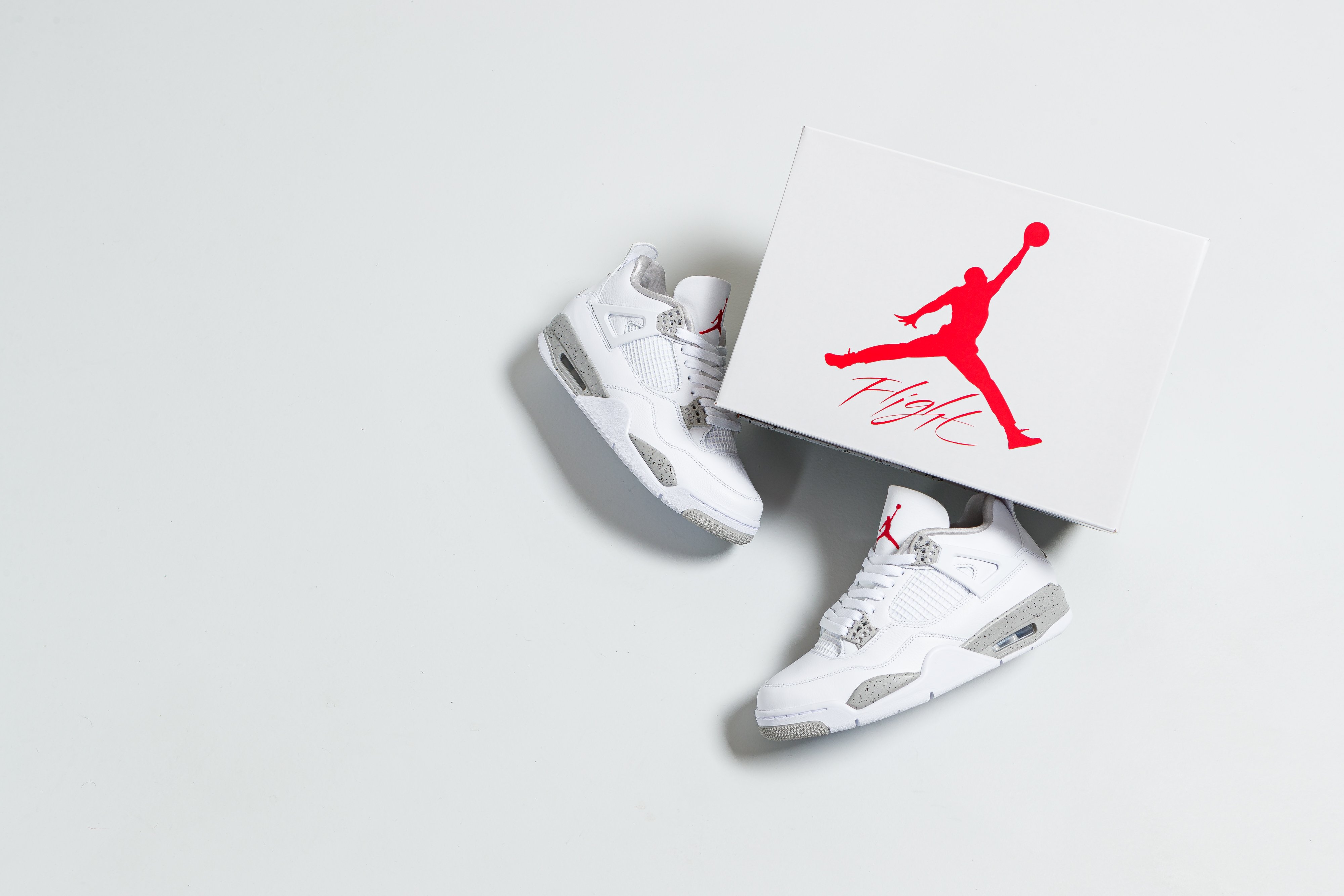 This Nike Air Jordan 4 brings a new vibe to the historic model, with a white genuine-leather upper, Jumpman branding on the heel and tongue and a heritage-inspired Cement finish on the midsole and eyelets. Though this colourway is brand new, it was inspired by the OG 'White Cement' colourway and has arrived in OG packaging.