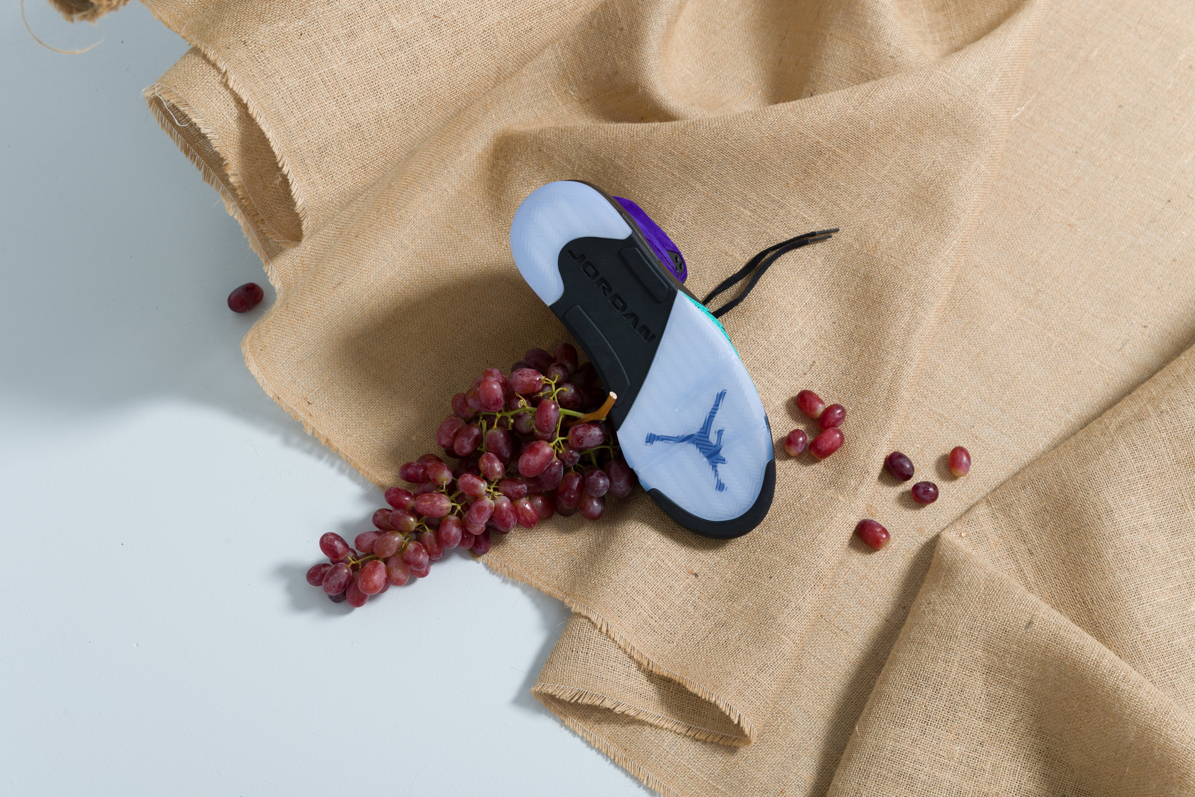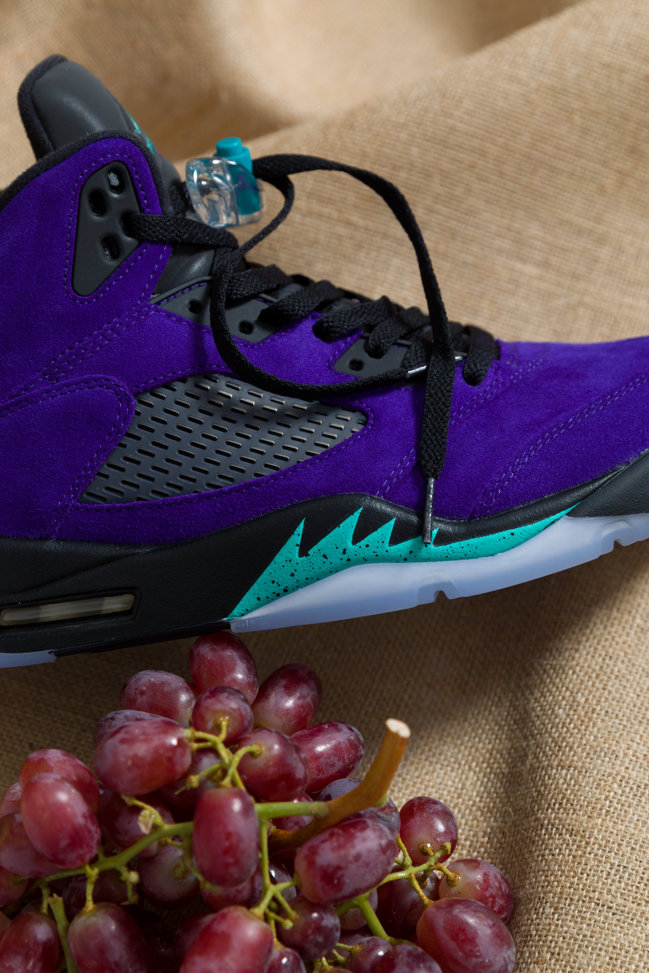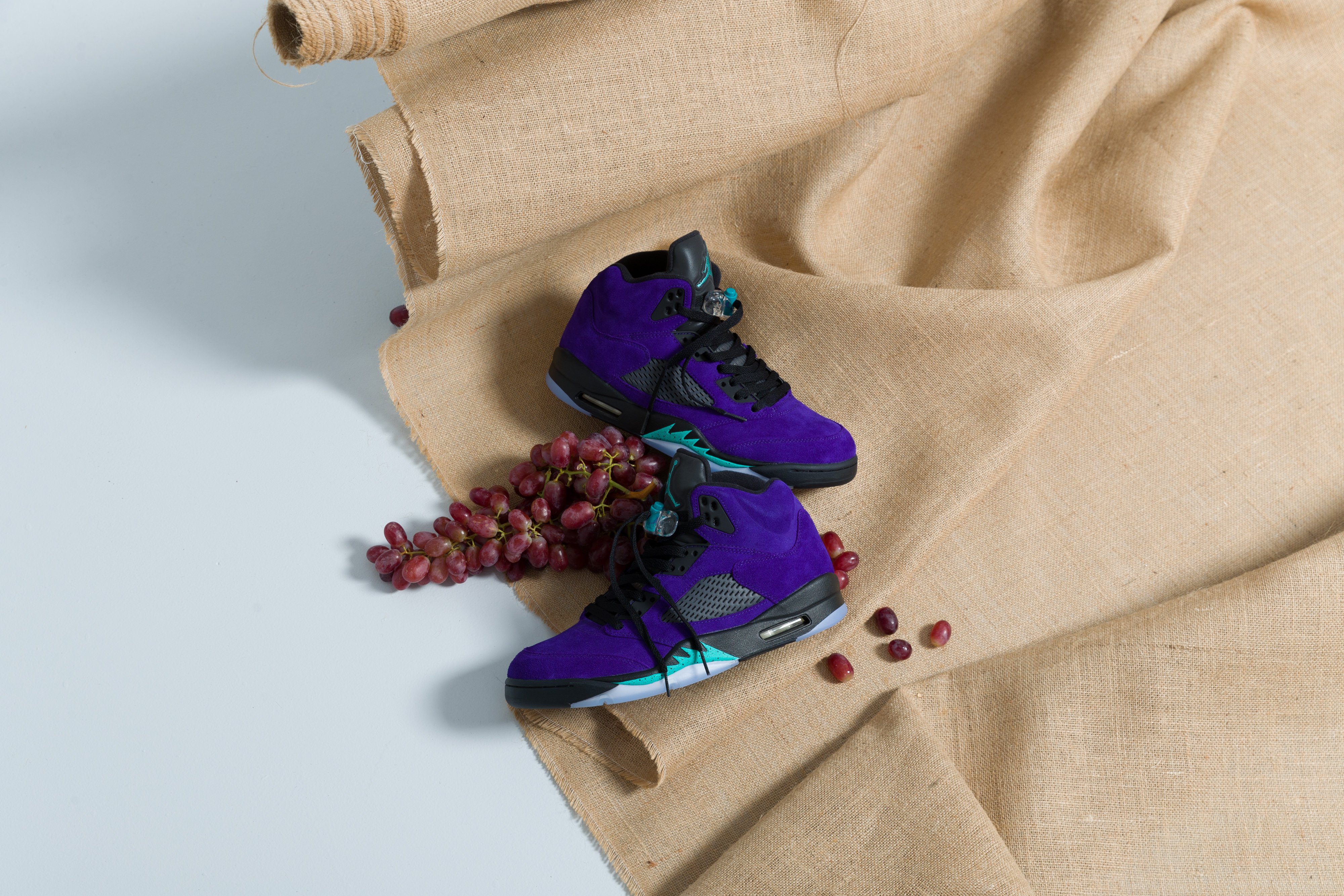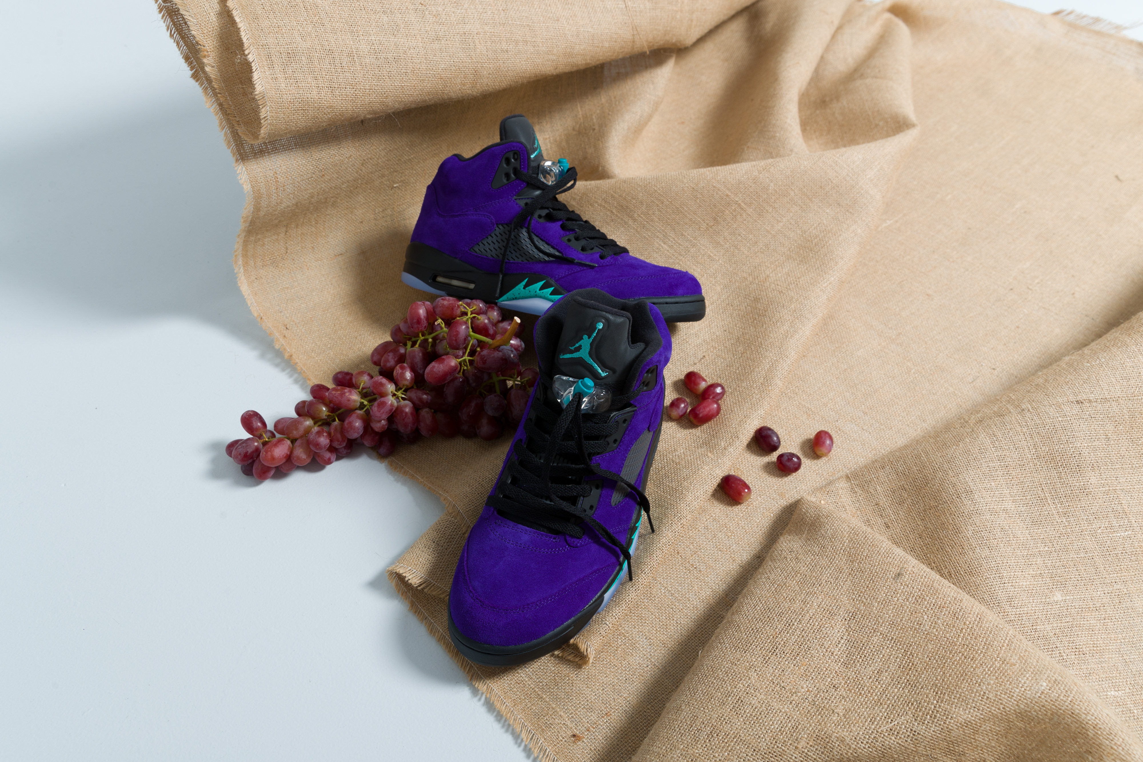 In 1990, the Air Jordan 5 debuted in three OG colourways: Black/Metallic Silver, White/Fire Red and White/Grape Ice. The entire trio remains relevant to this day, but the Grape colourway stands alone as the only look to eschew a team-orientated colour scheme.