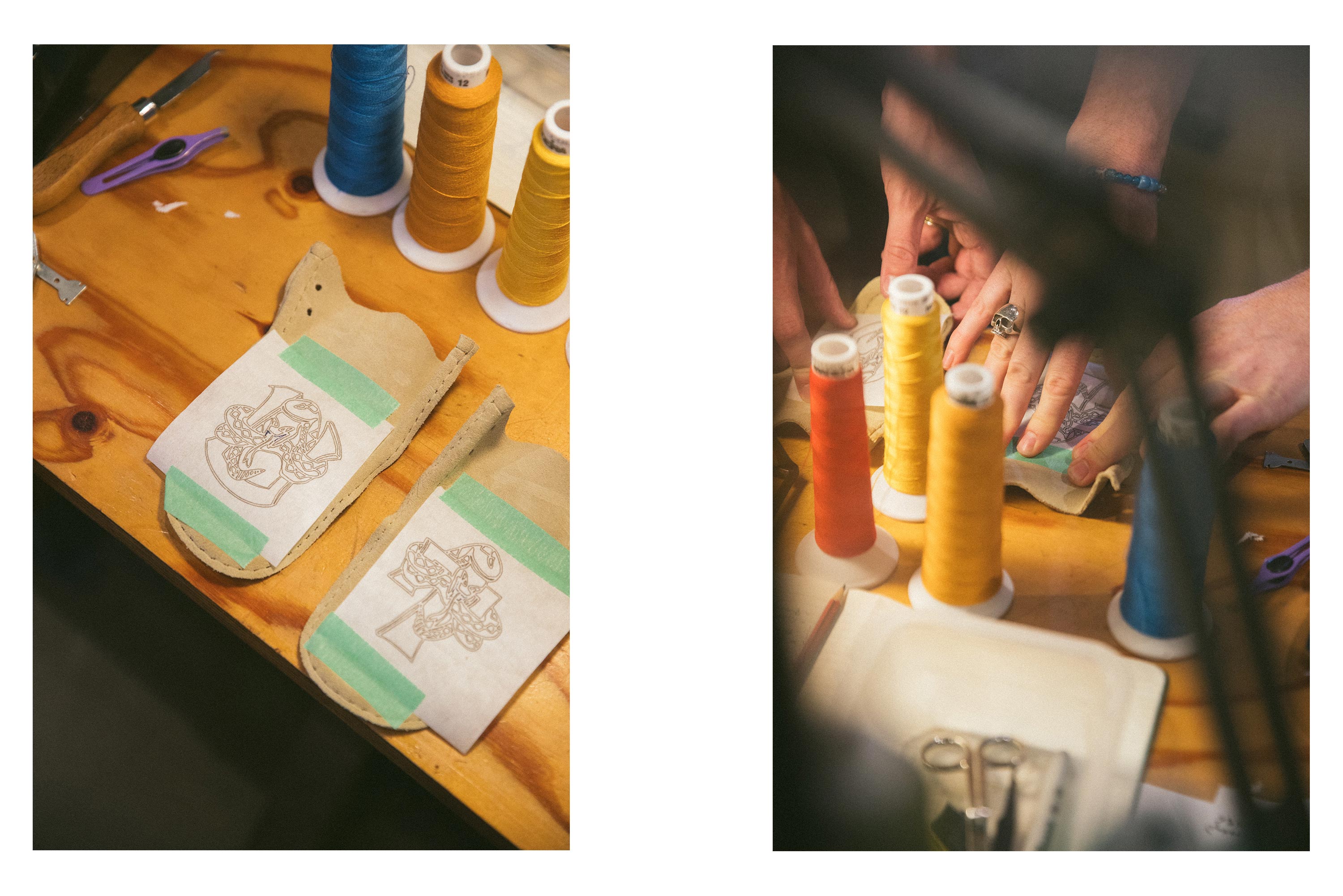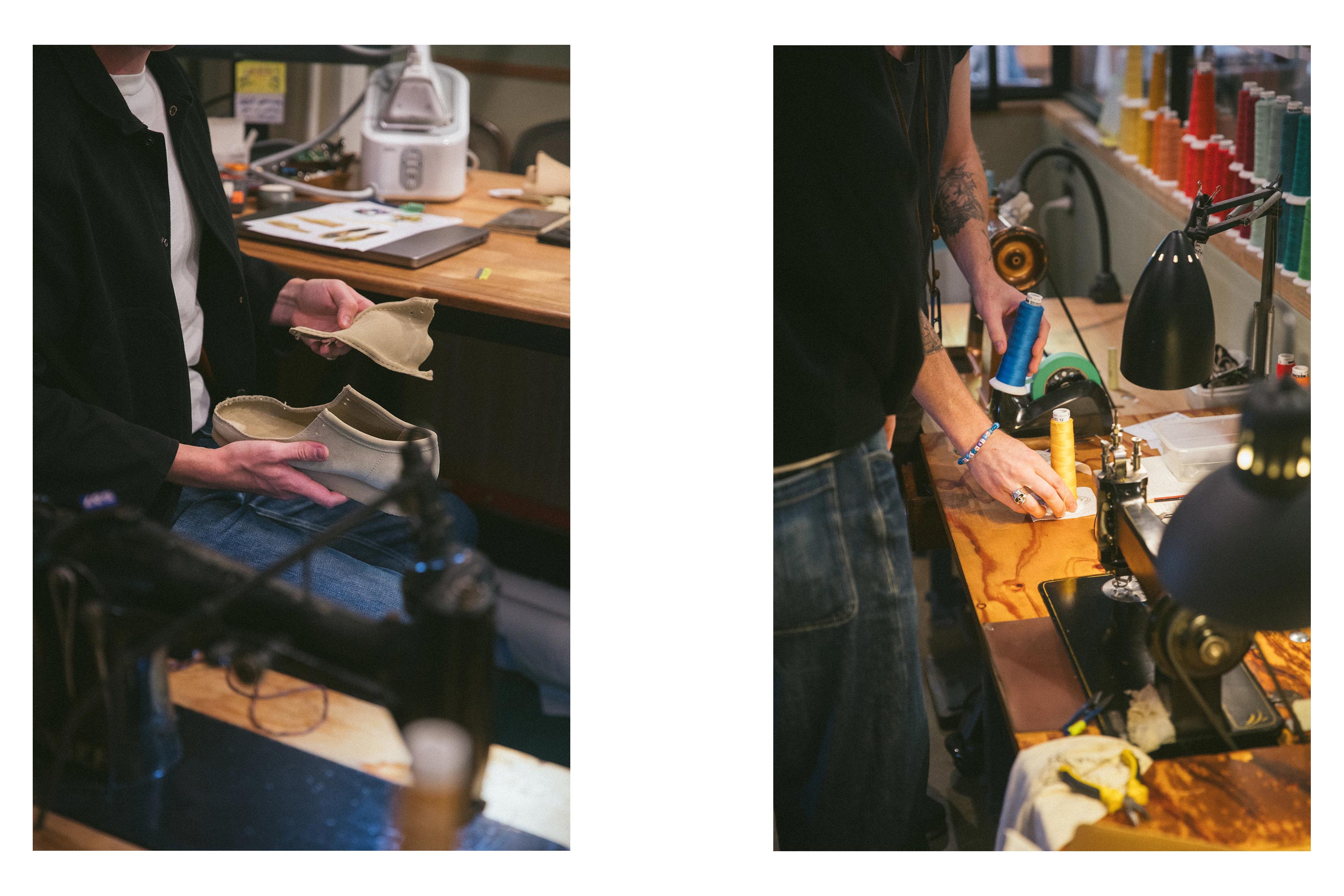 The final step in the process sees our "Shoemaker" Chase Shiel—known for this work creating fully bespoke footwear. Chase rebuilds that which was deconstructed in order to work within the confines of Anthony's machine which was never intended for footwear.