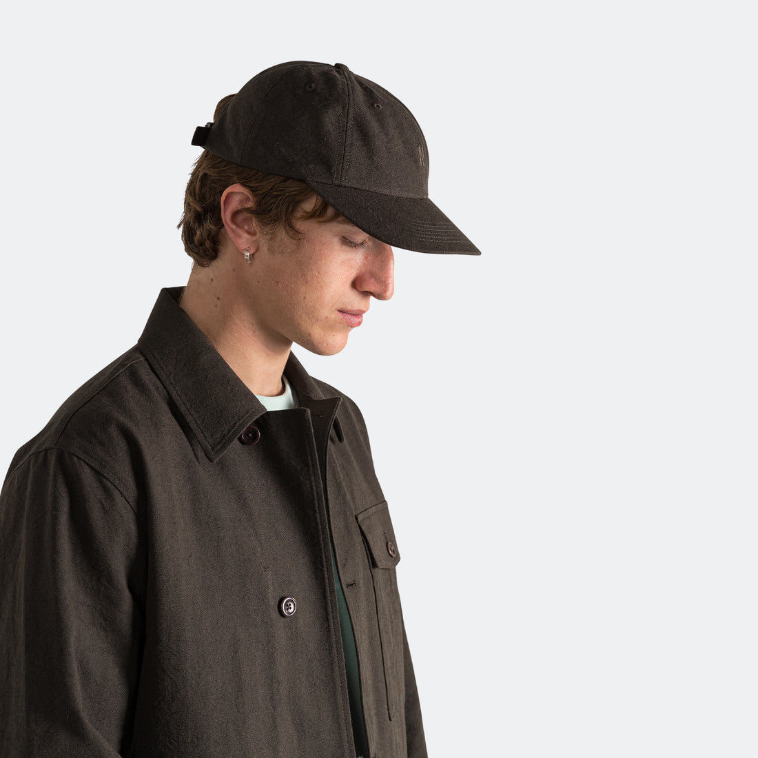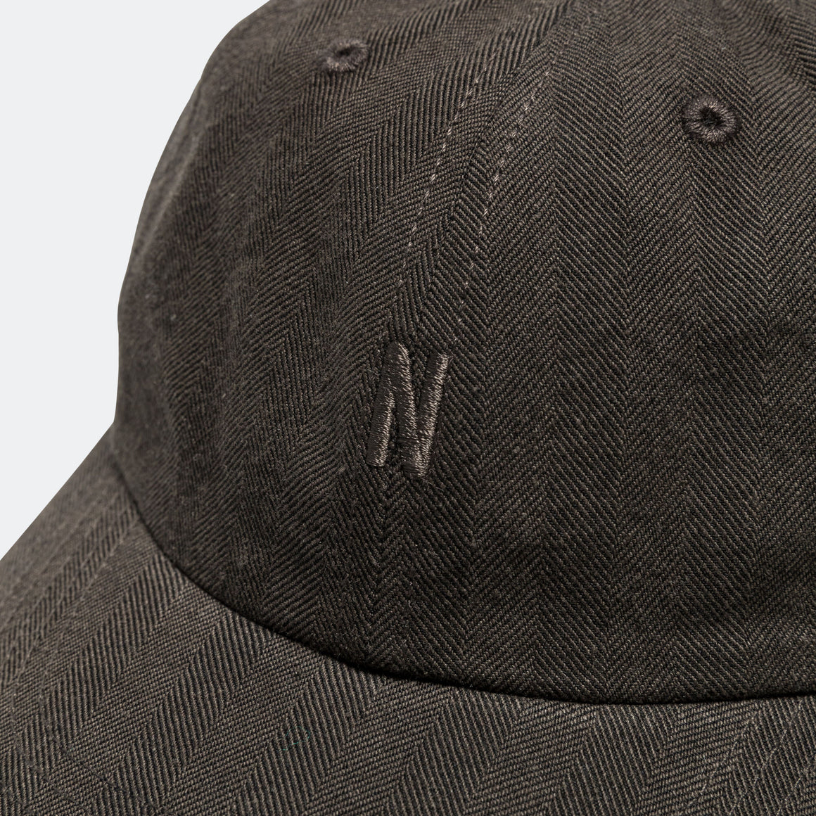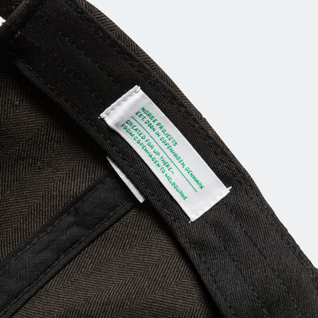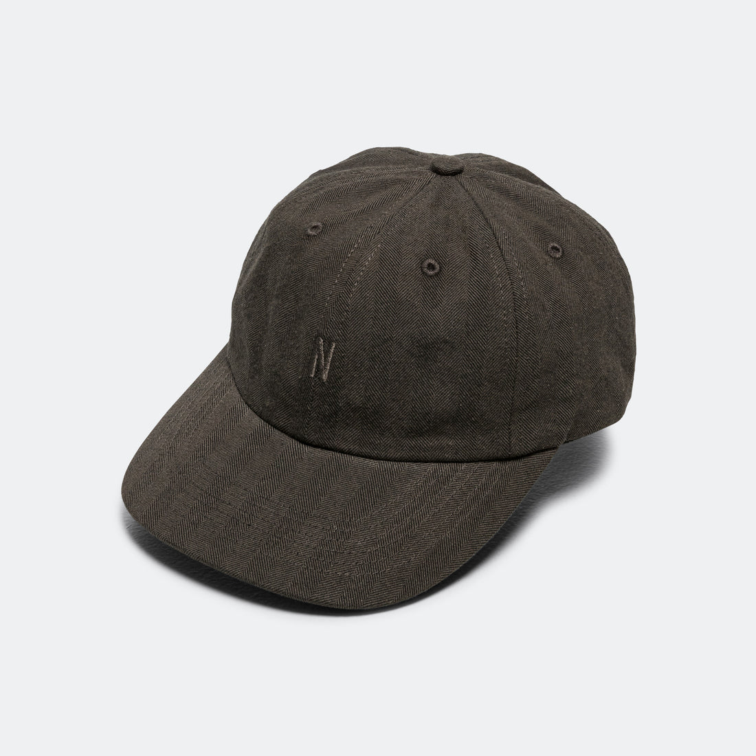 The 6-Panel cap is cut from the same cloth as the herringbone set, crafted from a deadstock wool-cotton fabric. It's got an adjustable strap and the distinctive 'N' that we find on Norse's caps.