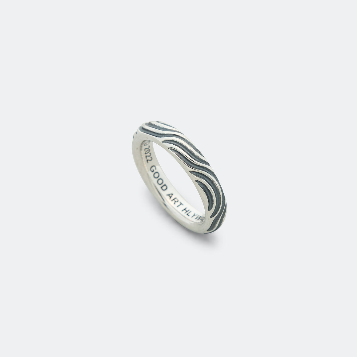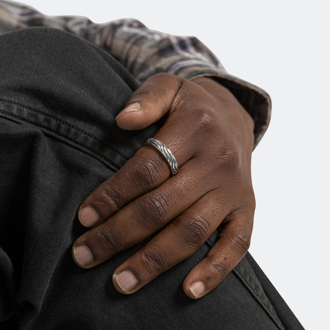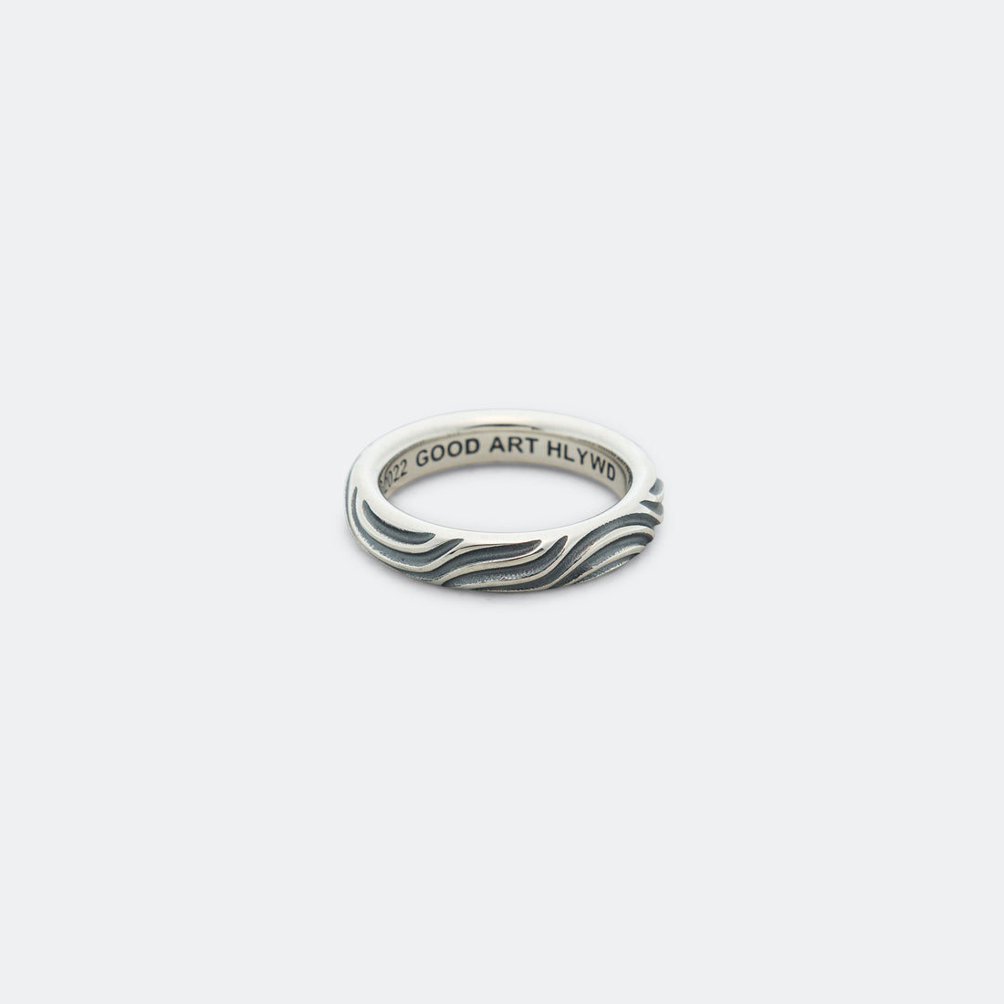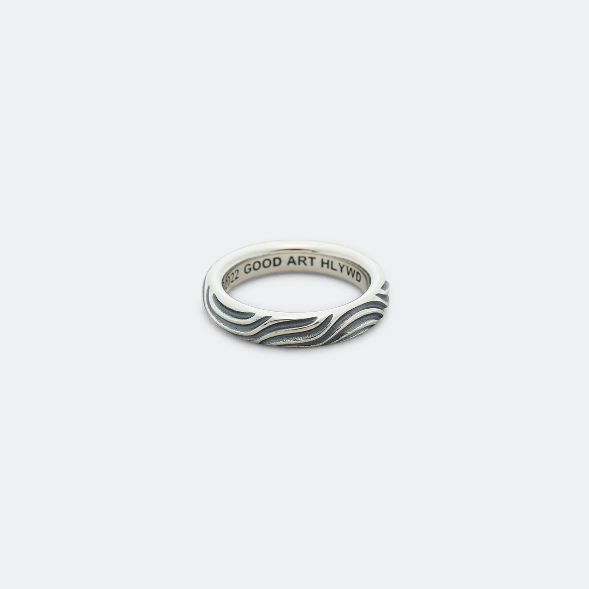 It's a ring made in the Los Angeles brands metal forgery from 925 sterling silver. The ring has a waved finish, perhaps representative of sand dunes hence the name and is the perfect candidate for stacking against others.