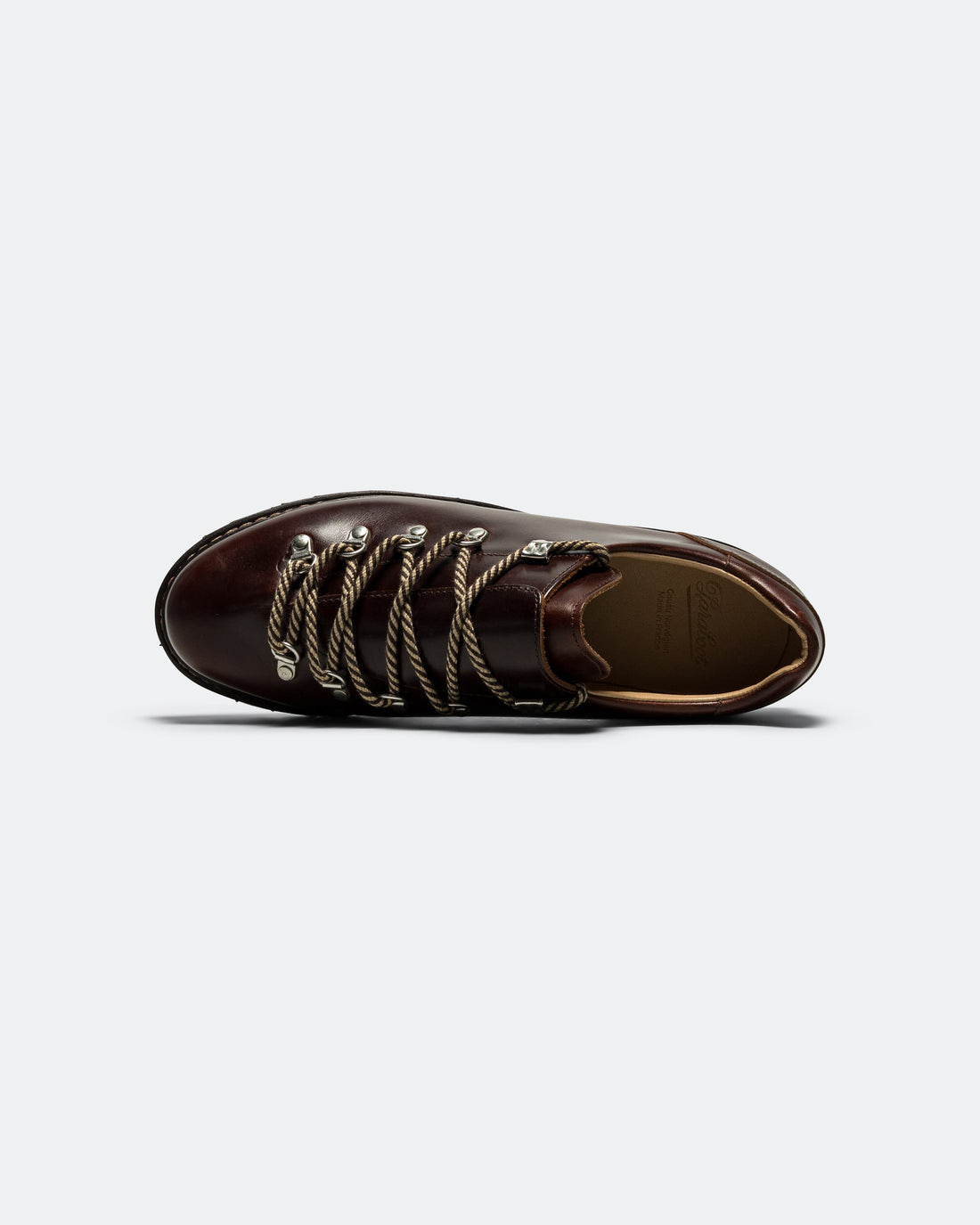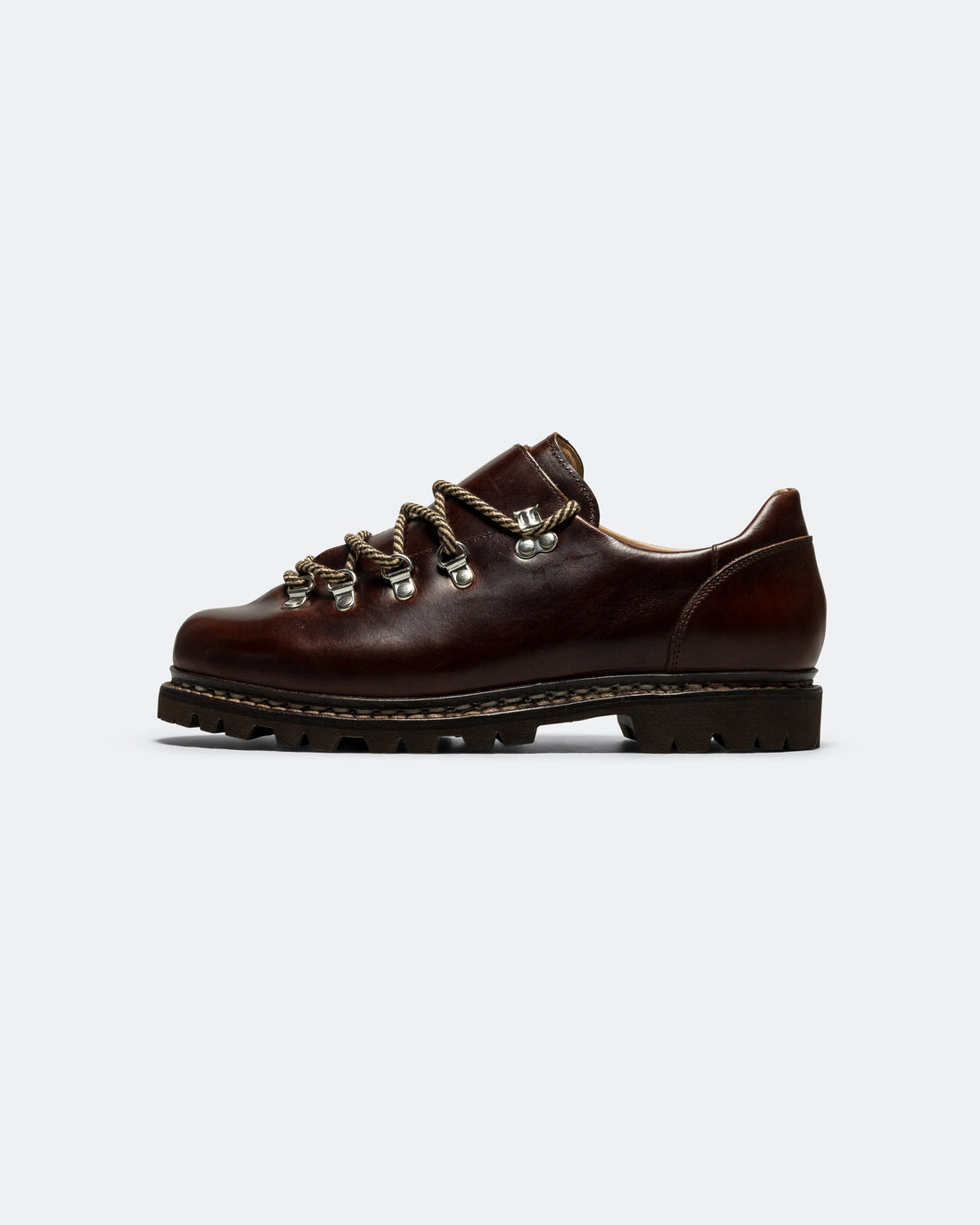 The Clusaz Jannu is a low-profile shoe that gets its name from the skiing town in France. They're crafted from a waxed leather upper with a full leather lining and feature a lugged rubber outsole. They're heavily influenced by mountaineering styles, with hook eyelets and rope laces crossed upon the tongue.
