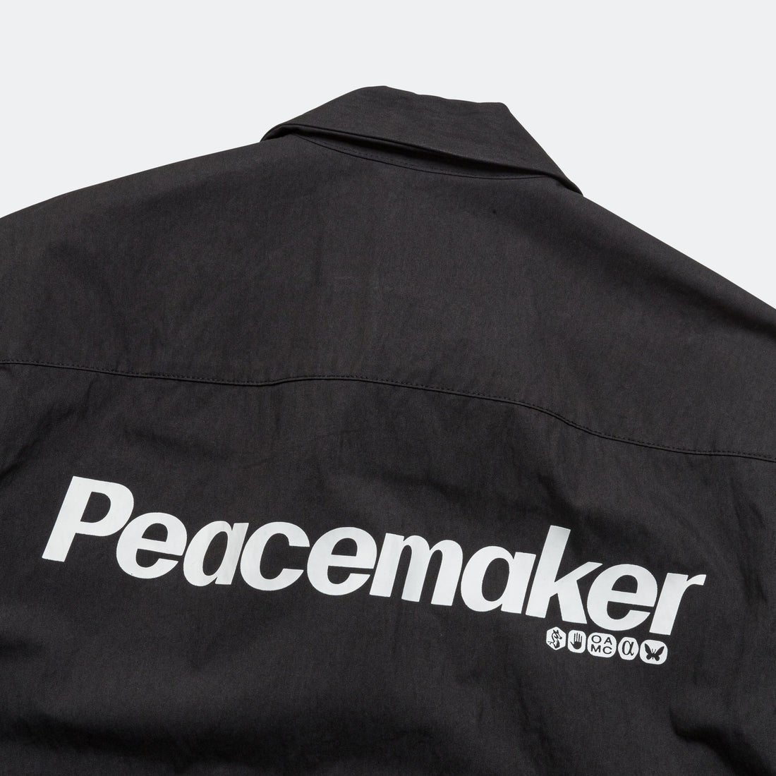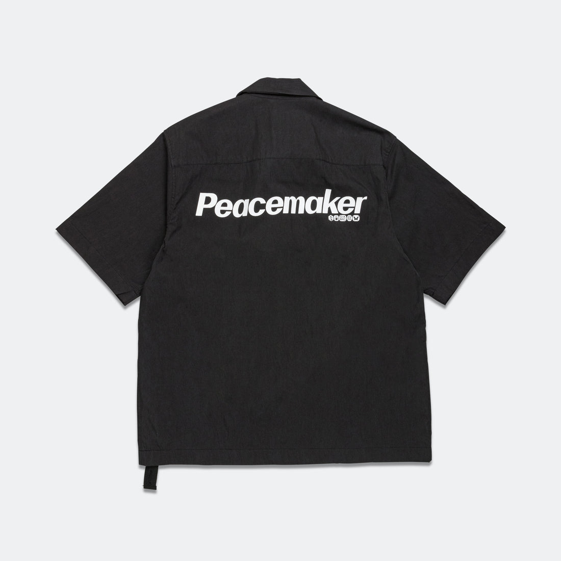 It's made from a cotton-nylon blend, and is detailed with mother-of-pearl buttons down the front. Peacemaker branding makes its mark on the back, embellishing an otherwise simple shirt.