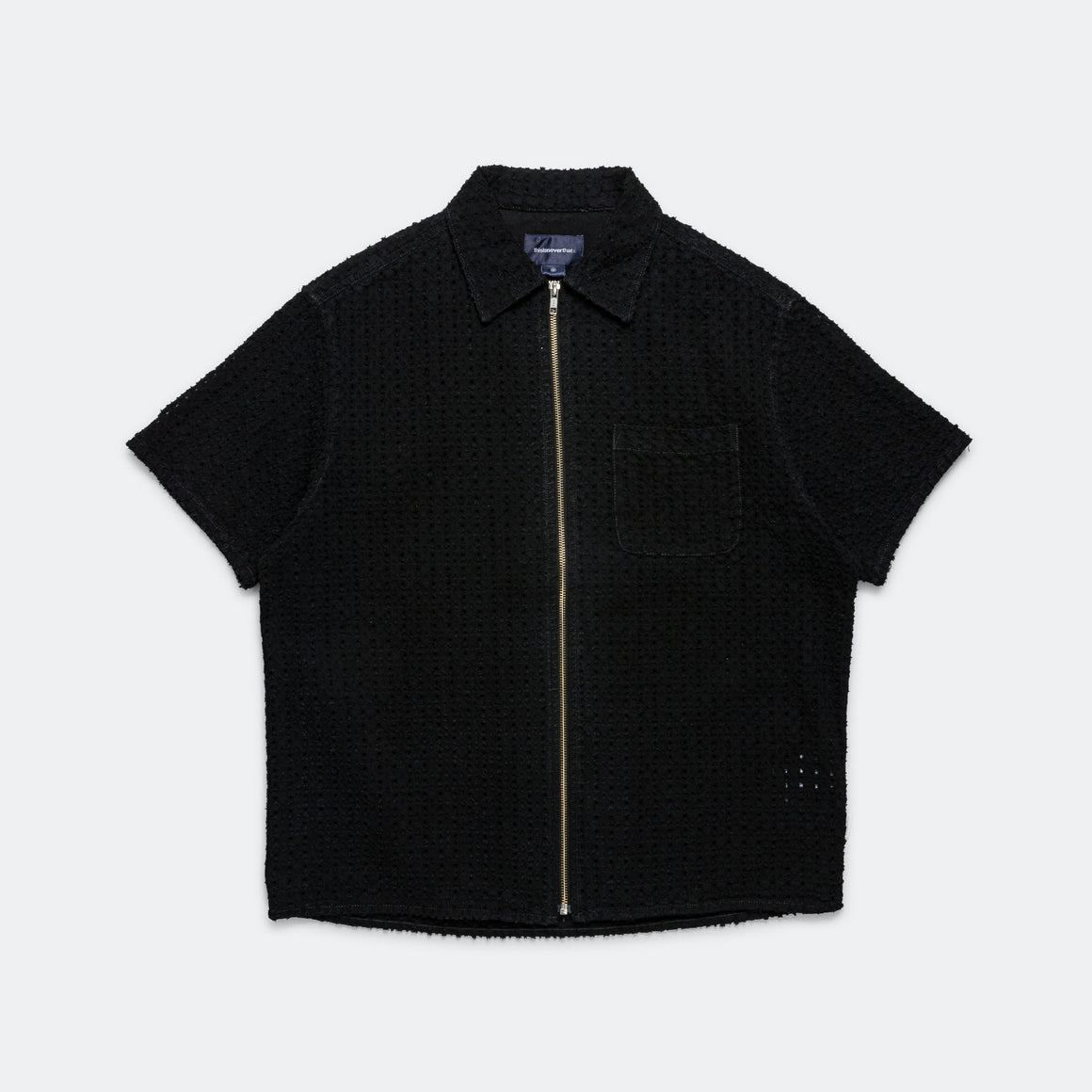Damaged Denim Zip SS Shirt - Black