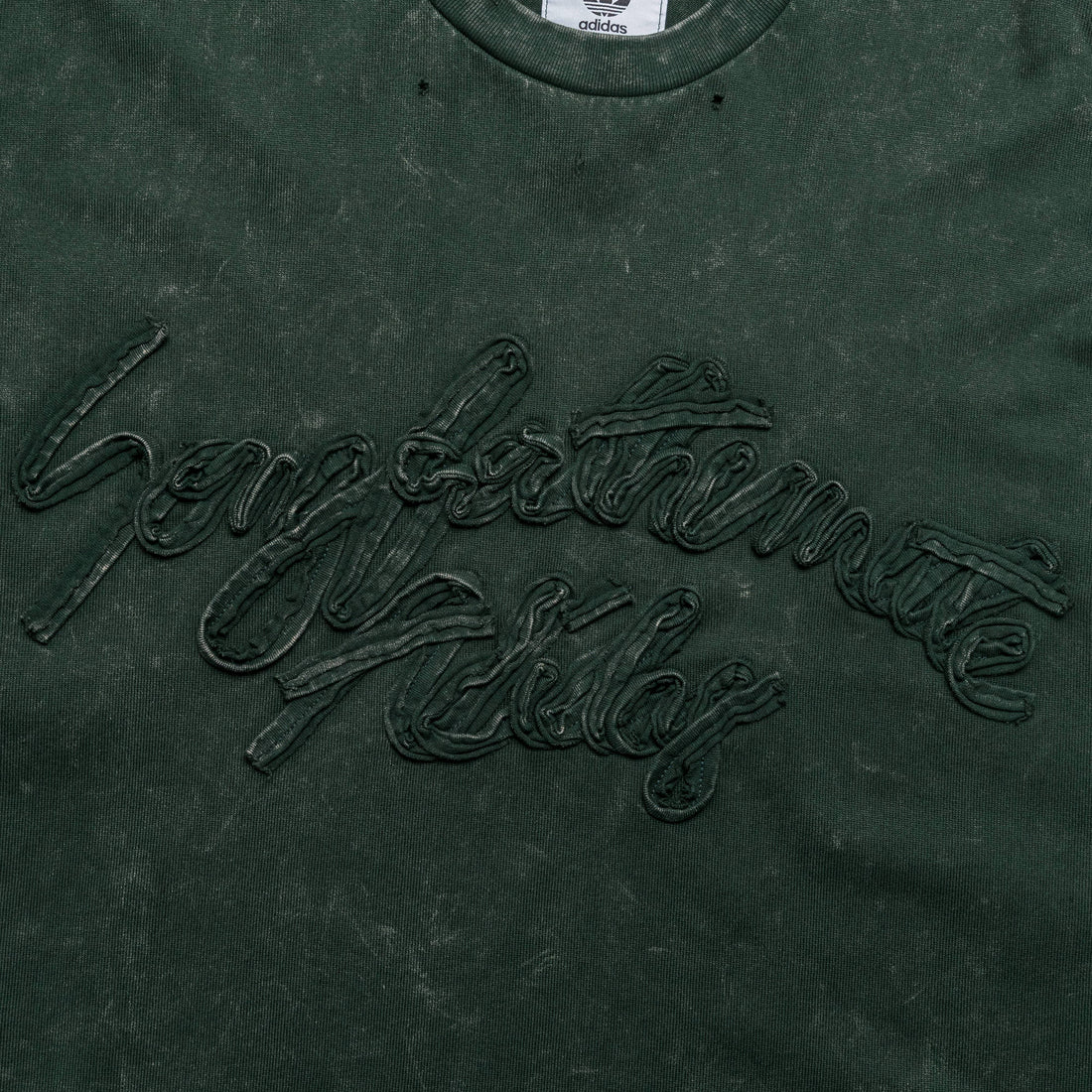 It comes in the form of a loose fitting tee, made from a soft cotton fabric with textured SFTM branding embroidered onto the blank. Subtle distressing throughout nod to the brands expertise of compelling fabrics and concepts while the slouchy silhouette of the tee can be attributed to the adidas model where reliable shapes are at the fore.