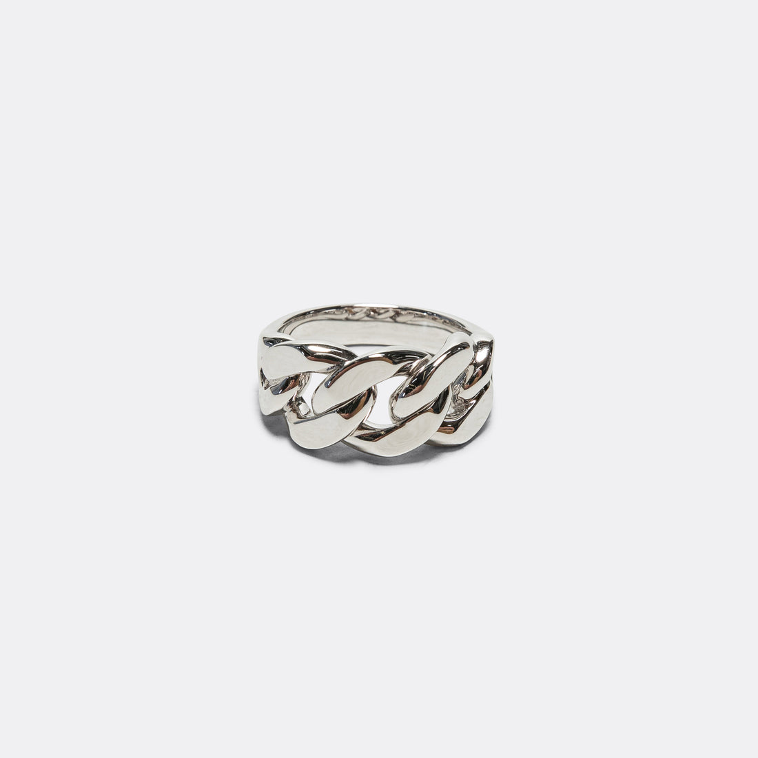 The Dean Ring uses a little bit of visual trickery to create a unique look outside of the norm. Created from a design which mimics the look of a linked chain, it fuses each link solid to form a ring.
