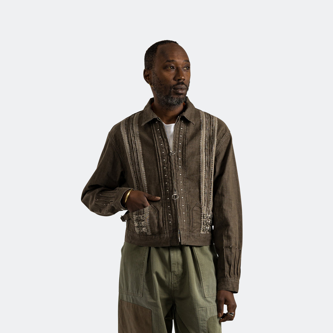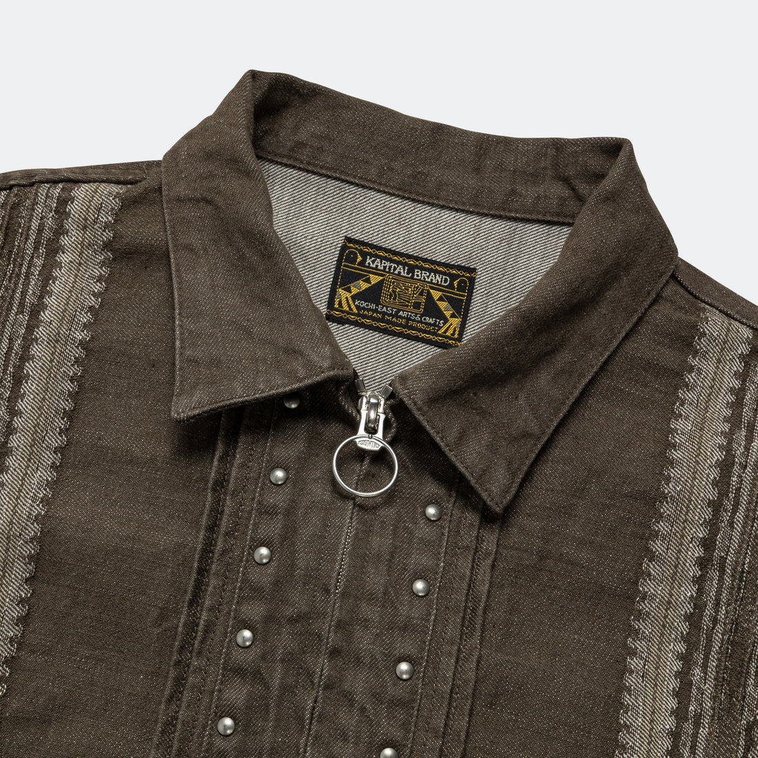 12oz YAGASURI Jacquard Denim Chimayo Drizzler JKT - Khaki