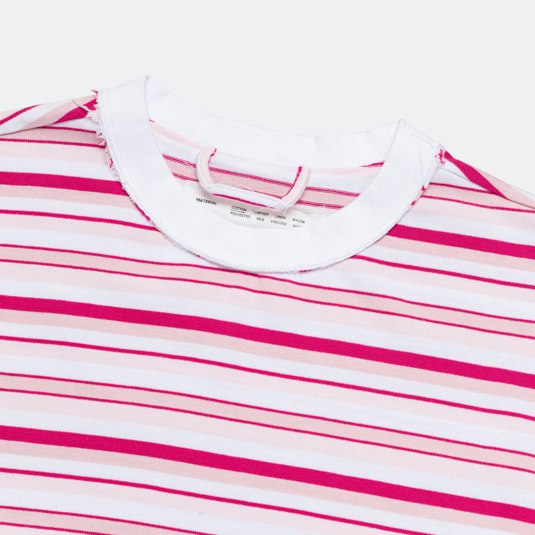 Made from a custom knit heavyweight jacquard stripe, the exposed seams and raw detailing is classic Camiel Fortgens.