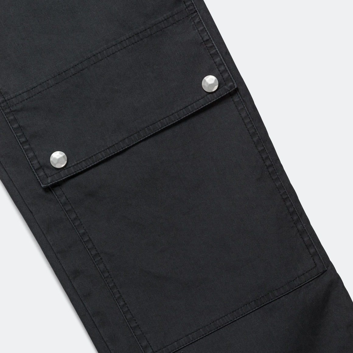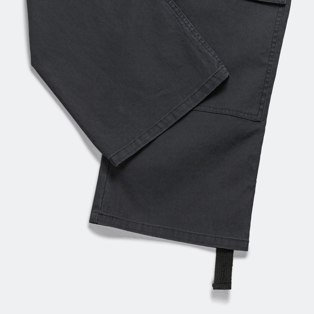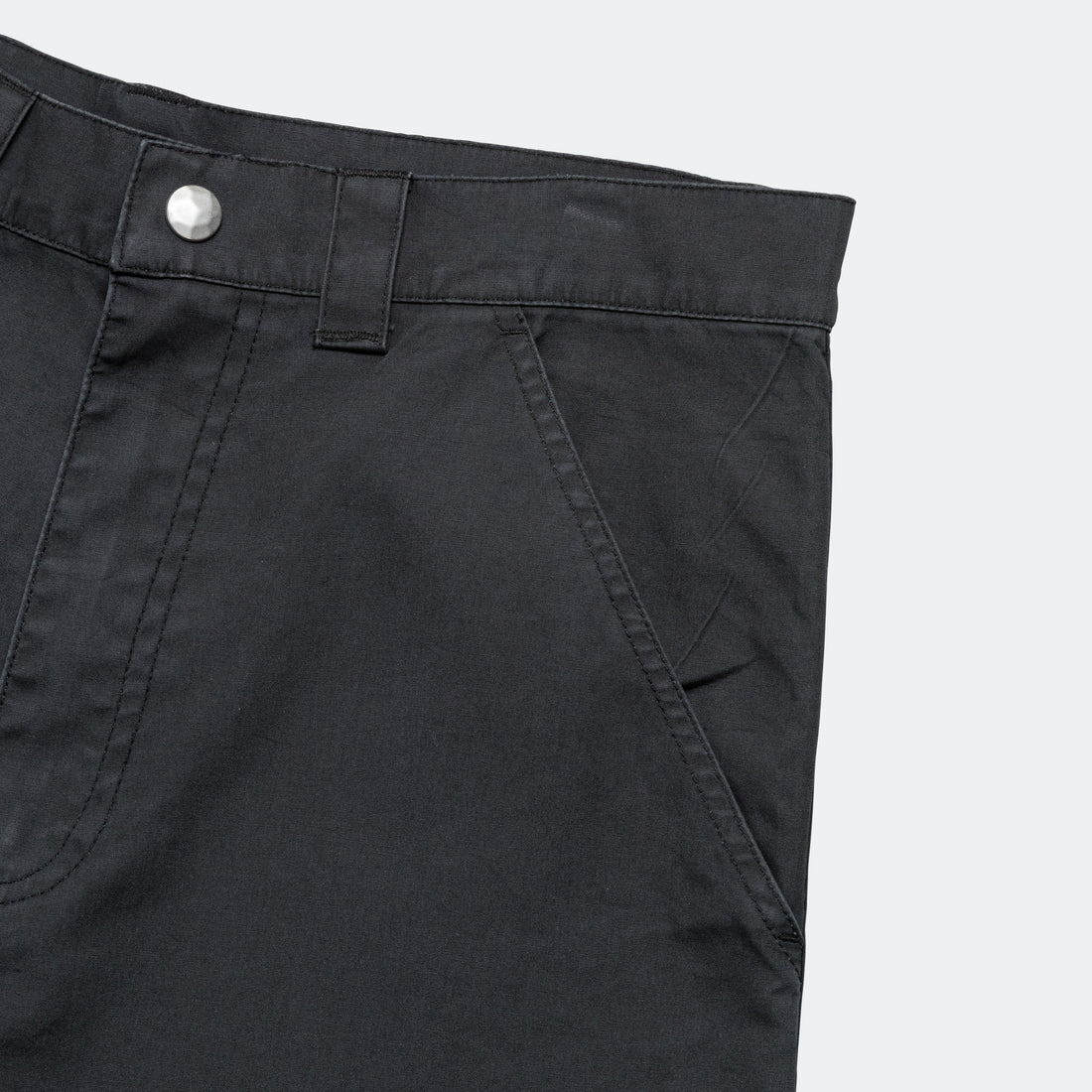 They're made from a durable cotton that have been garment dyed to achieve their wash while front leg pockets that have snaps on them add intrigue to the silhouette.