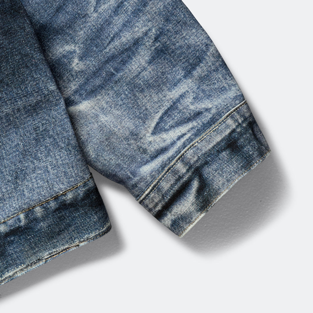 At a glance it looks like a pretty standard wash jacket until you get close enough to see that it's all digitally printed. Essentially it's a jacket printed onto a jacket. The vintage reference comes from BerBerJin—a heralded Japanese vintage store which sourced an oh-so-perfectly distressed Type III to be printed atop the cotton base.