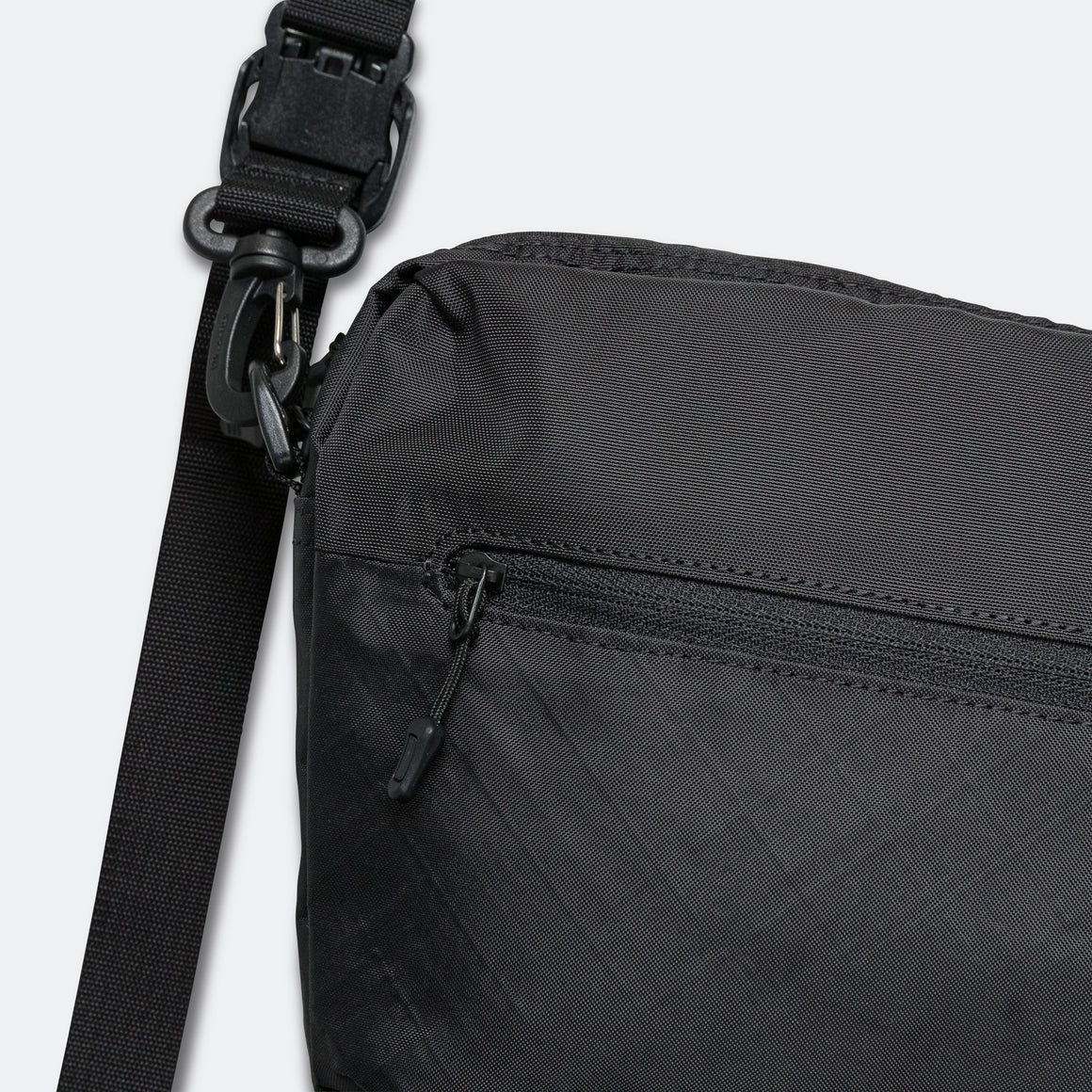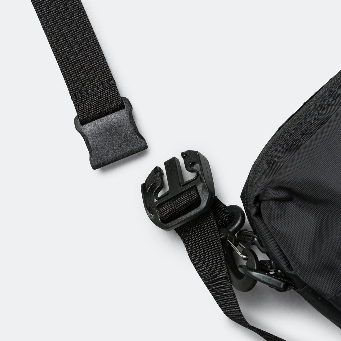 Made from a recycled polyester that takes the environment into account, this bag has an adjustable and removable shoulder strap so that you can use the body as a pouch if you prefer. It features a roomy interior perfect for a phone, wallet, keys etc and a zipped pocket at the front.
