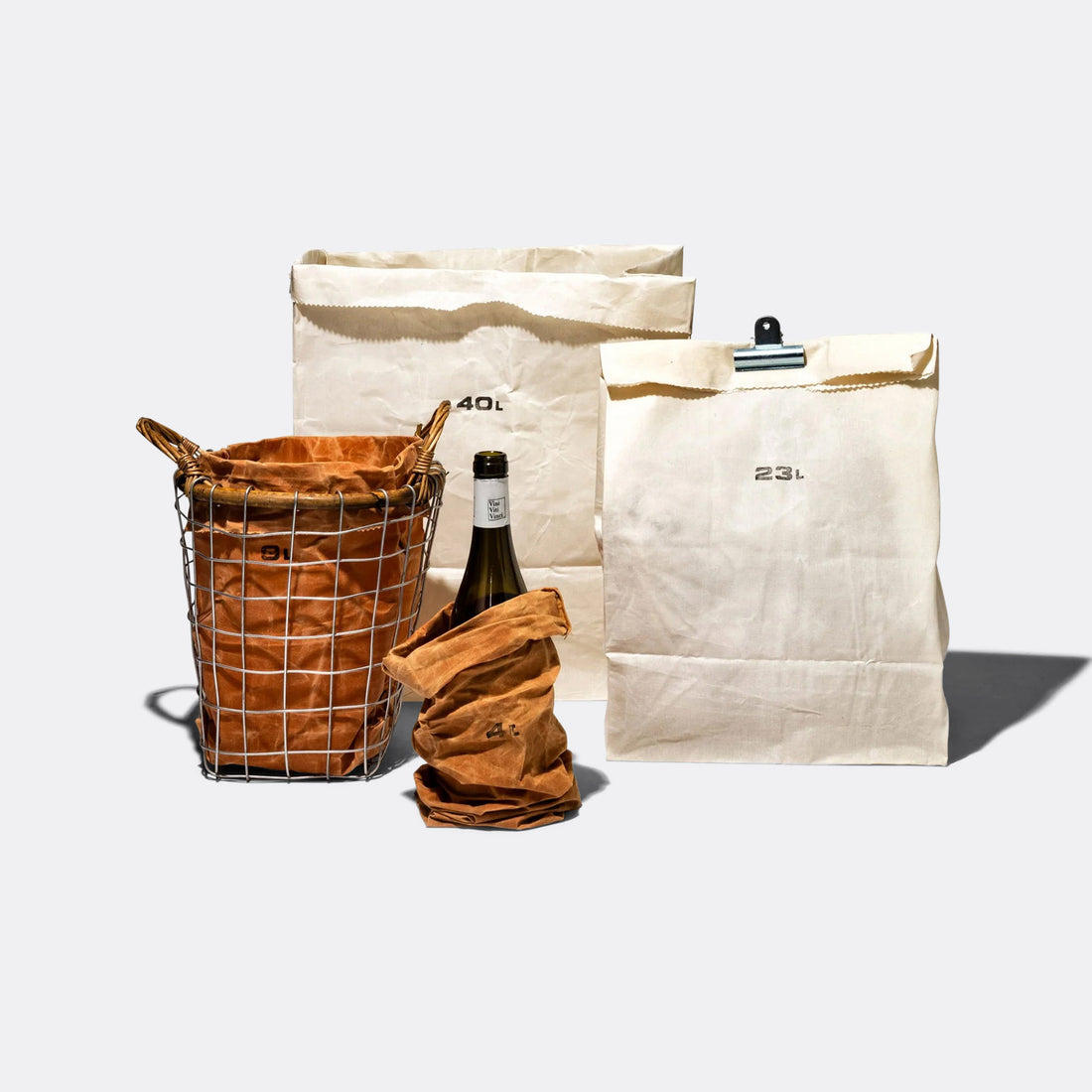 The PUEBCO Grocery Bag, made from waxed cotton, offers a sustainable and durable choice in comparison to plastic or paper bags. Available in two colours and various sizes, this bag combines the classic look of a paper shopping bag with the longevity of hard-wearing cotton fabric. It can also be re-waxed to ensure continued use.
