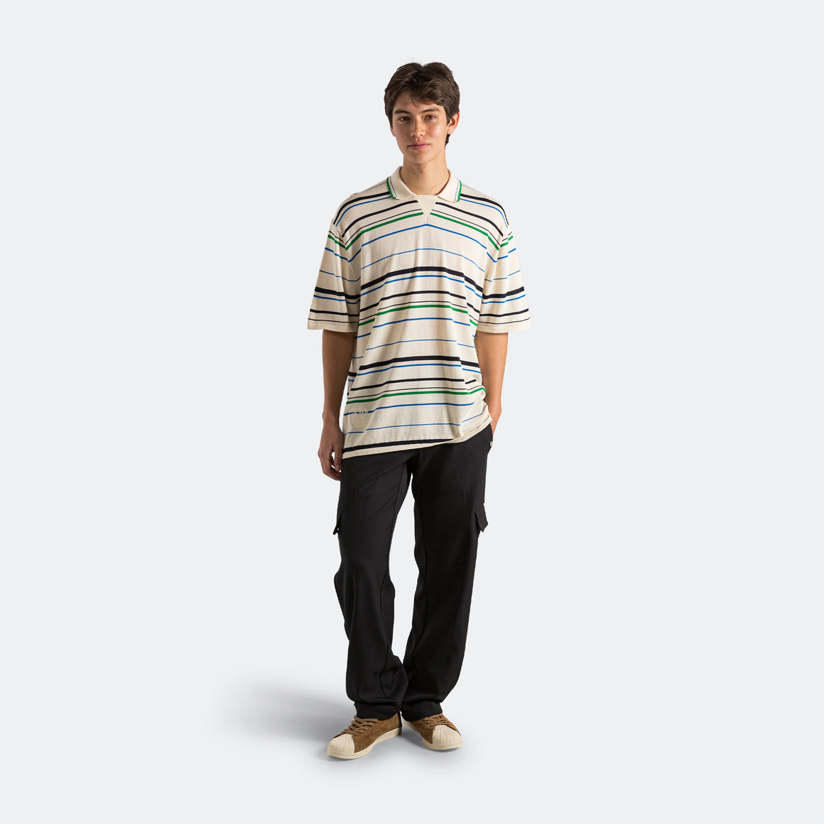 The Knit Polo is made from a soft knit fabric that's enriched with multicoloured stripes. It's detailed with the collabs' embroidered logo at the hem and at the back, so subtly that you can hardly see it.