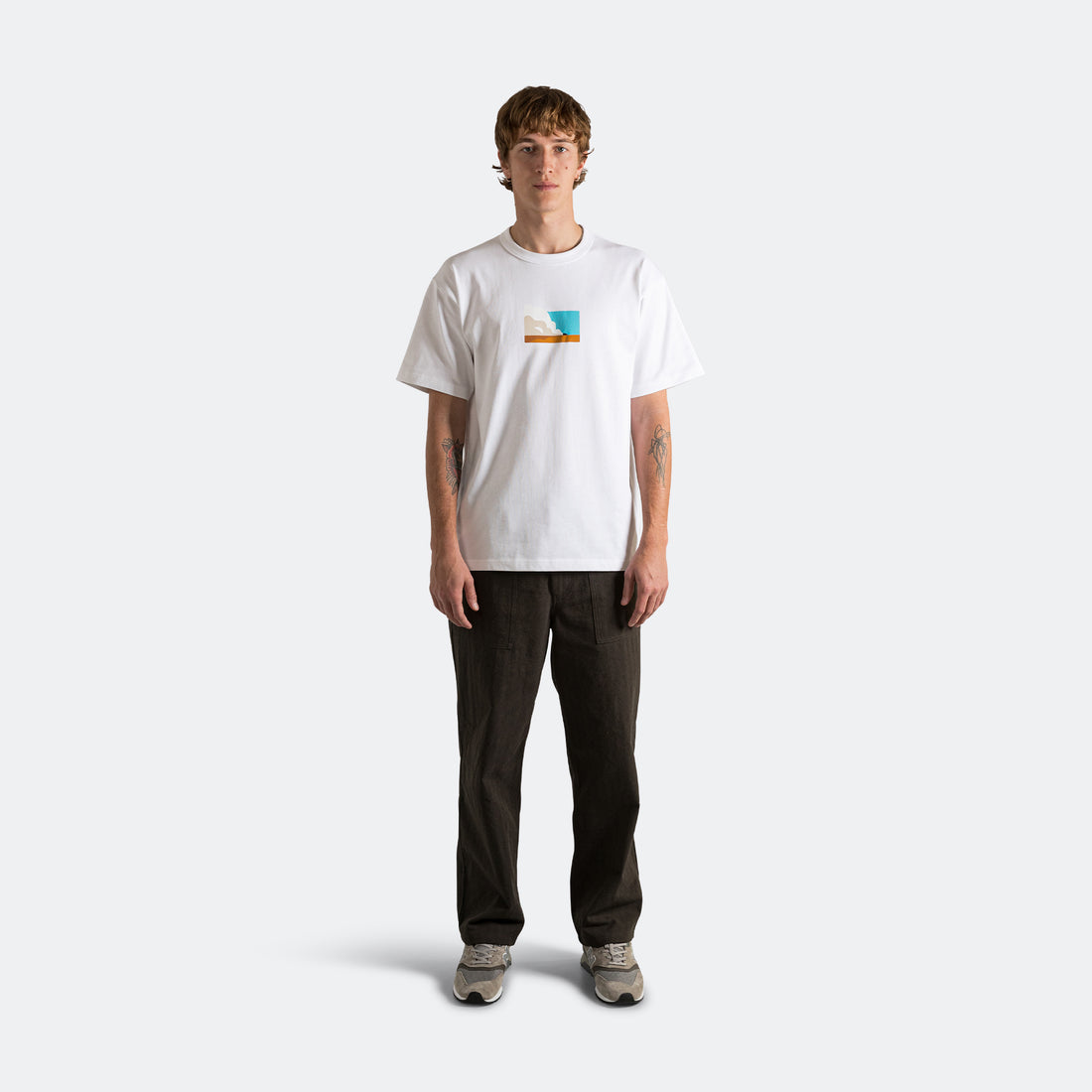 Artwork on the chest was commissioned by Sydney-based artist Mark Chester Harding. Mark's playful work encapsulates the energy of Australia, capturing endless horizons and rural scenes. Not restricted to this tee, you'll find Mark's illustrations on the hangtags used on the entire collection.