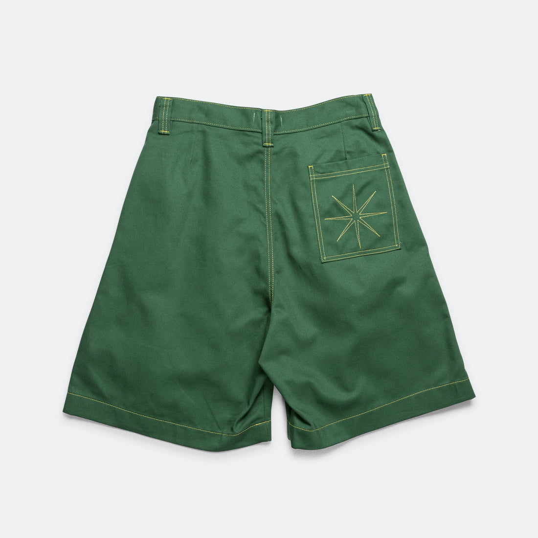 Built from heavyweight Japanese cotton drill, they're durable and comfortable enough to wear every day with ease. Large patch pockets on the back are accented by a stitched version of Pseushi's star motif.