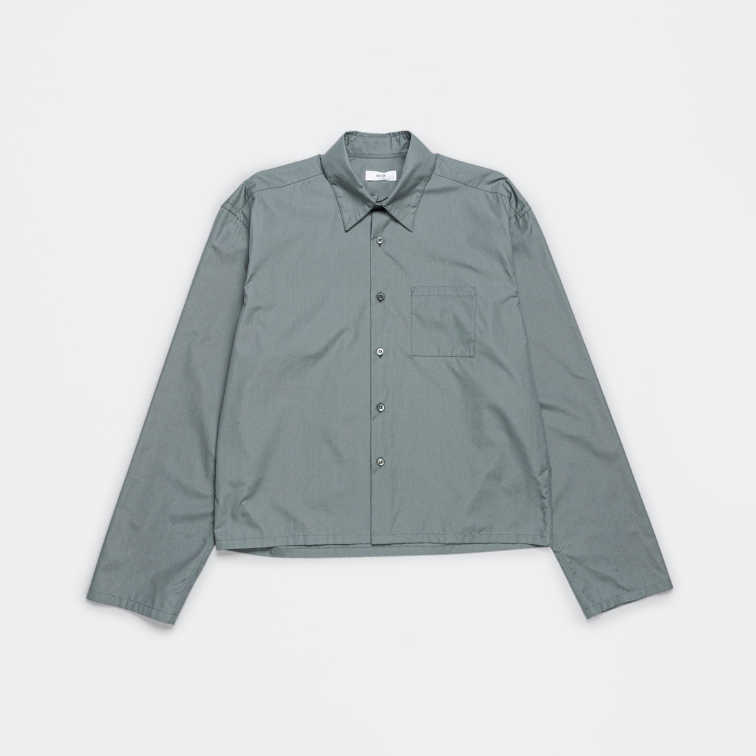 Made in English poplin which is both crisp and soft, the silky finish and polished sheen give the effect of pure luxury. The shirt's defining details are in the lightly cropped length and minimalist sleeves which are devoid of any cuff or buttons. These two relatively minimal changes make a wholly new piece.