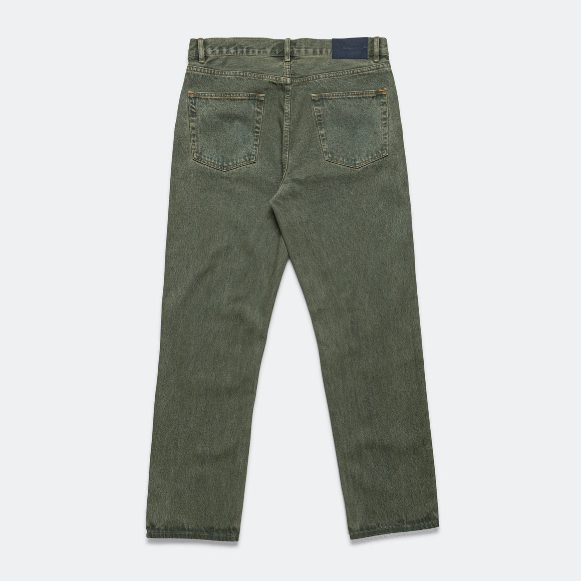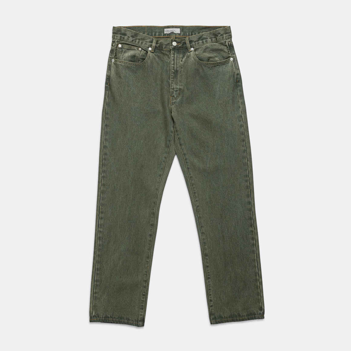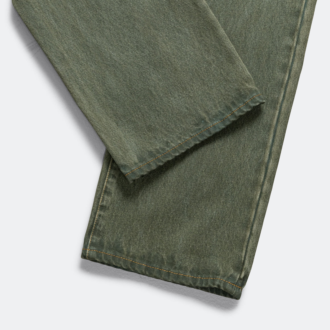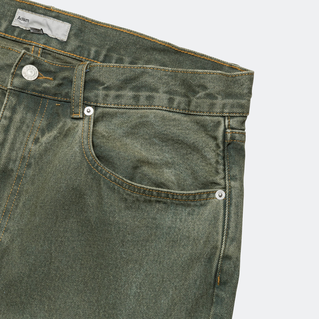 These get the typical Adsum treatment, using heavy thread tex chain stitching machines to do a whole garment overdye, achieving the desired wash. The process also gives them a soft feel out of the box, skipping the painful breaking-in process you'd normally need to persevere through with raw denim.