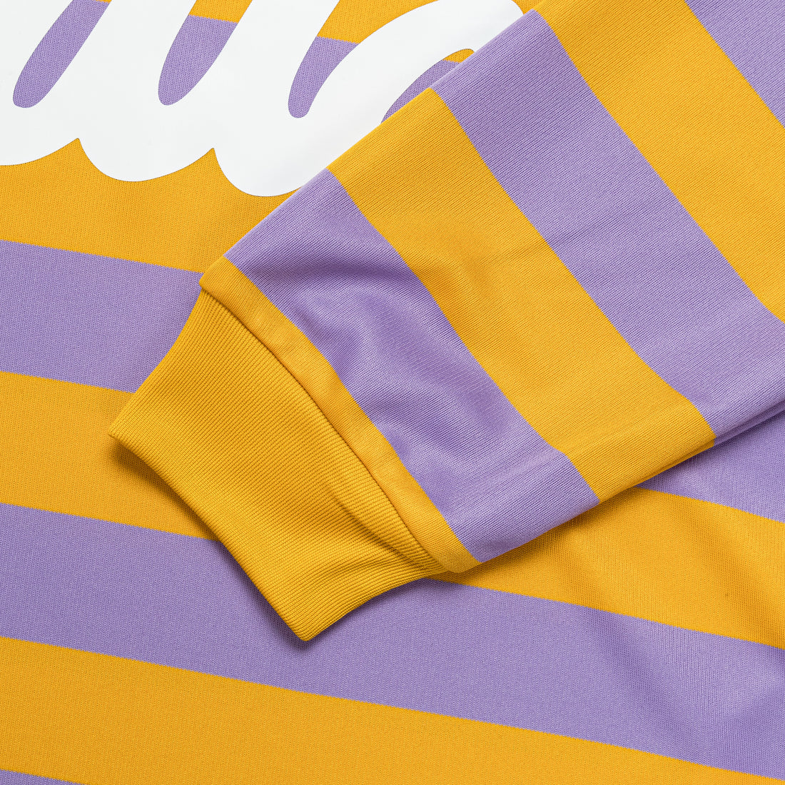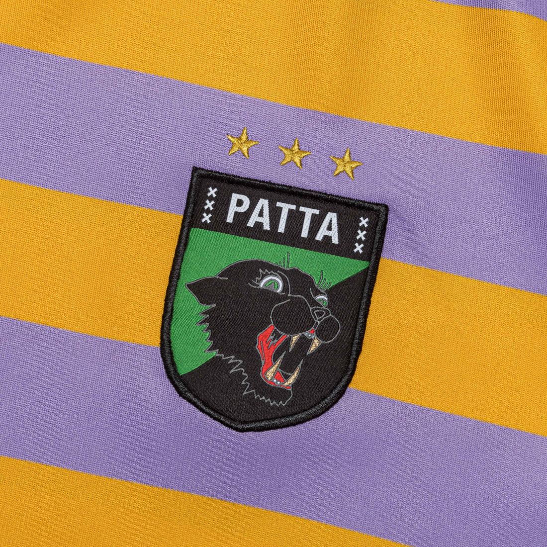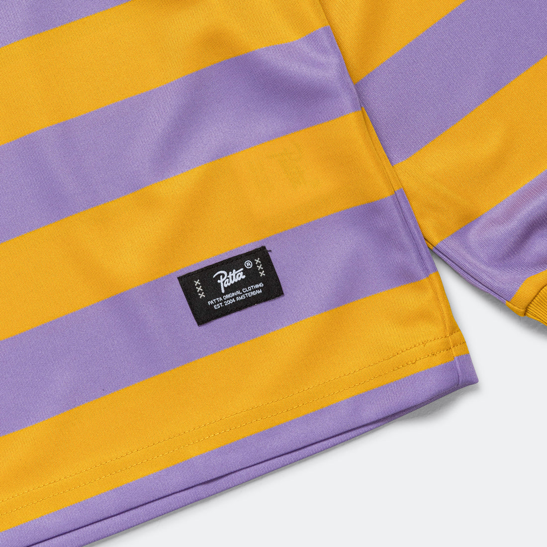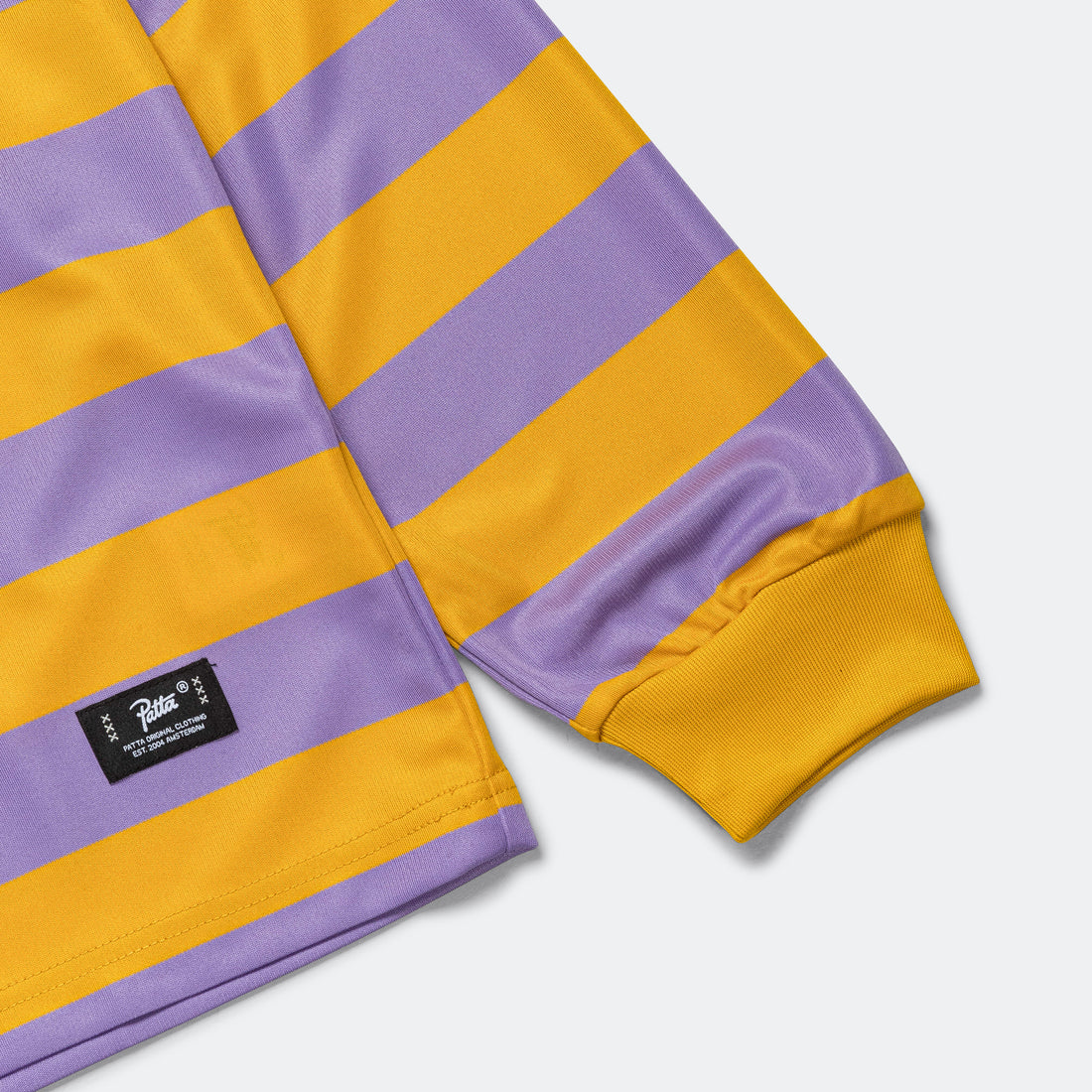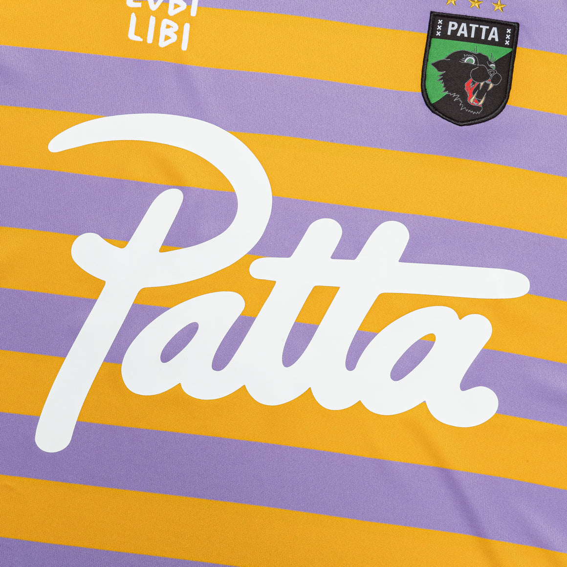 Patta have cemented their name in this game, with success in the world of premium jerseys. This long sleeve Football style is made from a smooth polyester fabric with an engineered two-toned stripe construction. It reads Patta's printed logo across the chest as well as a woven brand football badge and Lobi Libi embroidery.